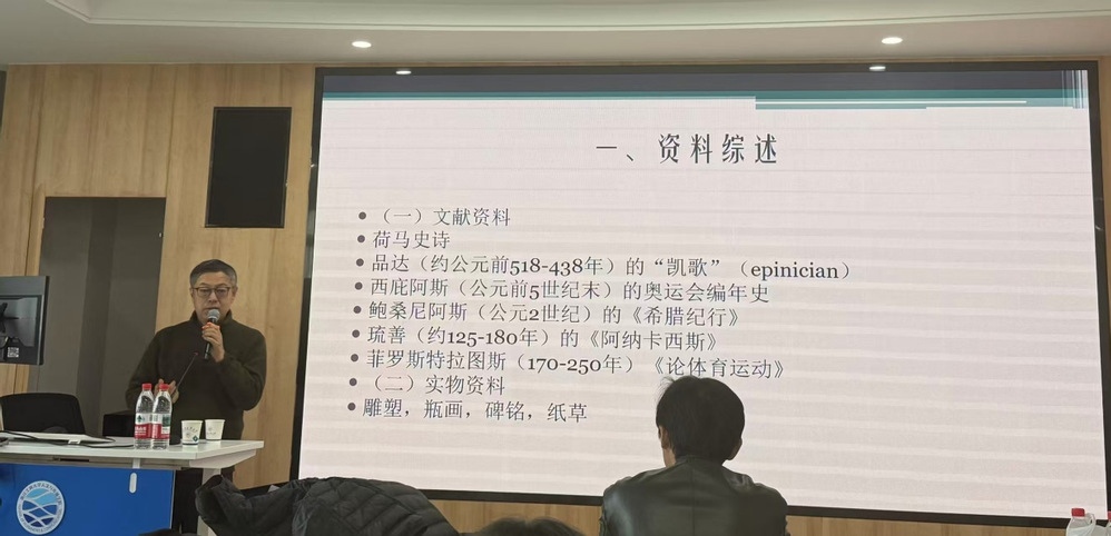 随后,王教授围绕历史演变展开,清晰梳理了奥林匹亚赛会的发展脉络:从赛会的起源,到希腊赛会的分类,再到奥林匹亚赛会的独特性。王教授指出,奥林匹亚赛会以其“纯粹体育竞技+宗教神圣性”的独特性区别于其他赛会,赛事以宗教祭祀为核心,全程贯穿着神圣仪式。讲座还介绍了奥林匹亚赛会的具体日程安排,并讲述了其后期发展与走向终结的历史。