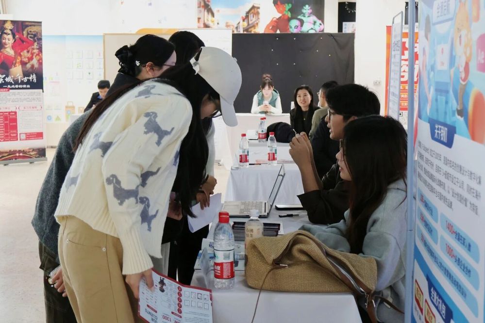 11月5日下午,浙江工商大学艺术设计学院一楼121展厅顺利举办了浙江工商大学2026届实习就业文化产业专场招聘会。此次招聘会由浙江工商大学招生与就业指导处和共青团浙江工商大学委员会联合主办,艺术设计学院、旅游与城乡规划学院、人文学院、未来传播学院、公共管理学院、外国语学院、东方语言与哲学学院共同承办,旨在为我校毕业生与优质企业搭建精准对接的优质平台,助力毕业生开启职业发展的新篇章。